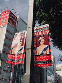 本展の開催を知ったのは上野の街中。街灯に吊るされた垂れ幕にひと際目を引くエリザベス女王。ダイアナ妃初来日時の日の丸とユニオンジャックの掲揚を彷彿させ、町をあげての歓迎ぶりが見て取れました。